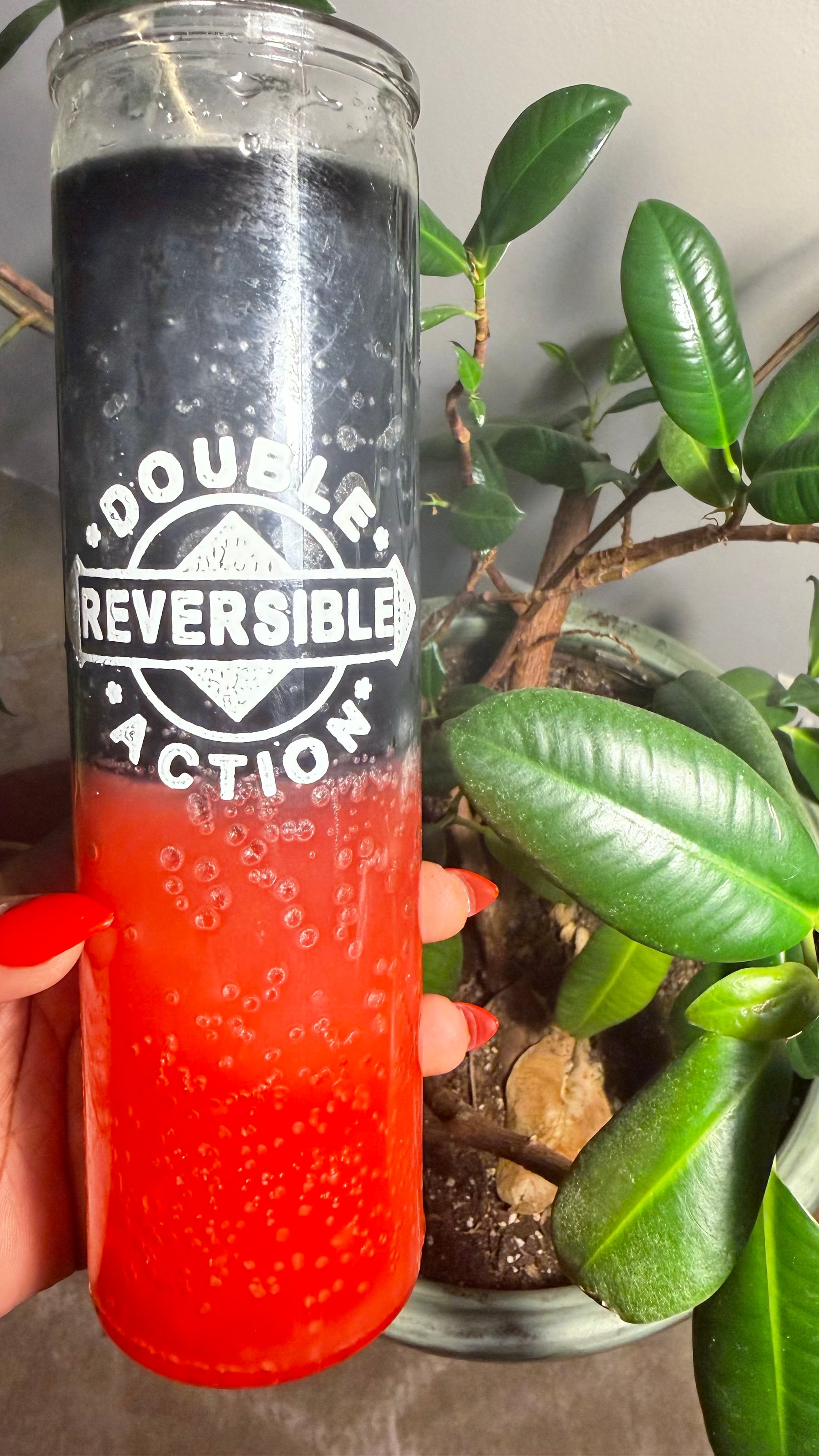 This double action candle is divided into two powerful halves — black and red, each carrying its own spiritual charge.